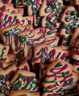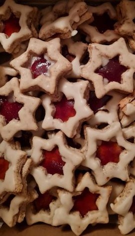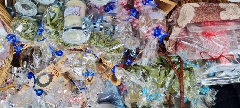 Unser vielfältiges Sortiment umfasste Prickelndes mit und ohne Alkohol, frische Schaumküsse aus der Pfälzer Manufaktur, selbst gebrannte Mandeln, Schokoladenkekse, Muffins, Husarenkrapfen, Tannenbäume, Hildabrötchen und weitere feine Plätzchen. Neu im Programm hatten wir Yvonnes herzhafte Kürbiscremesuppe, Lavendelsäckchen, Lavendelsirup, Lorbeerblätter und Rosmarinsalz.